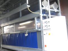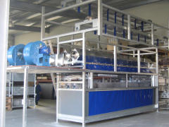 Besonders die wichtige Trocknung lässt bei vielen Maschinen zu wünschen übrig. Also wurde wieder eine eigene Planenwaschmaschine selbst erdacht und gebaut. Diese ist nun größer, moderner, vollelektronisch geregelt, trocknet natürlich perfekt (auch die Keder und Hohlsäume) und verfügt über einen wichtigen zweiten Planenfahrwagen. Und damit ist sie nun doppelt so schnell wie unsere erste Maschine.